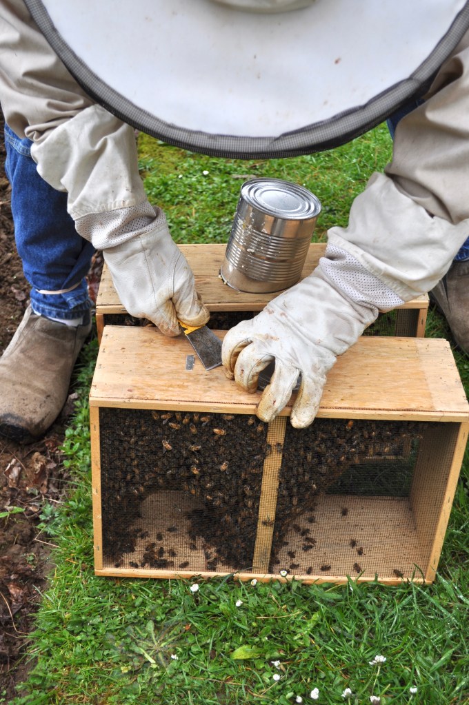 今日は午前中に、我が家の2つの巣箱に、カリフォルニアからオーダーした2つのミツバチのパッケージを、インストールしました。