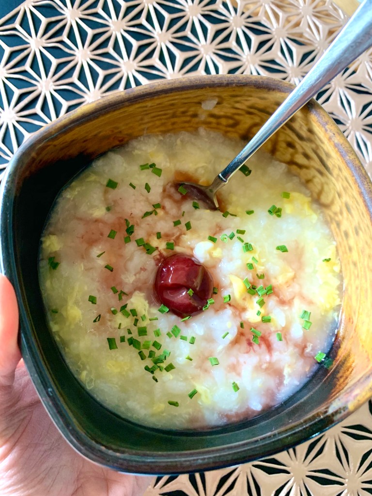 今朝は、曇りで肌寒いので、朝ごはんはトロトロお粥。
