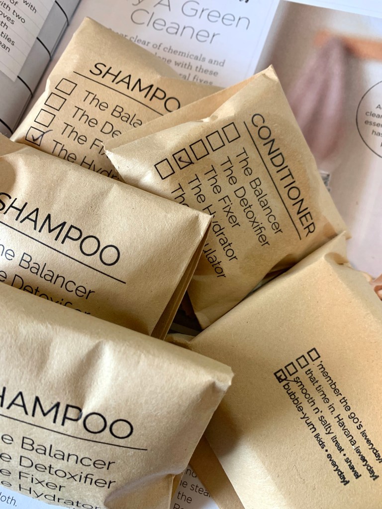 そしてもう一つの決め手は、プラスチックボトルに入っていないシャンプー&コンディショナー。固形なの。