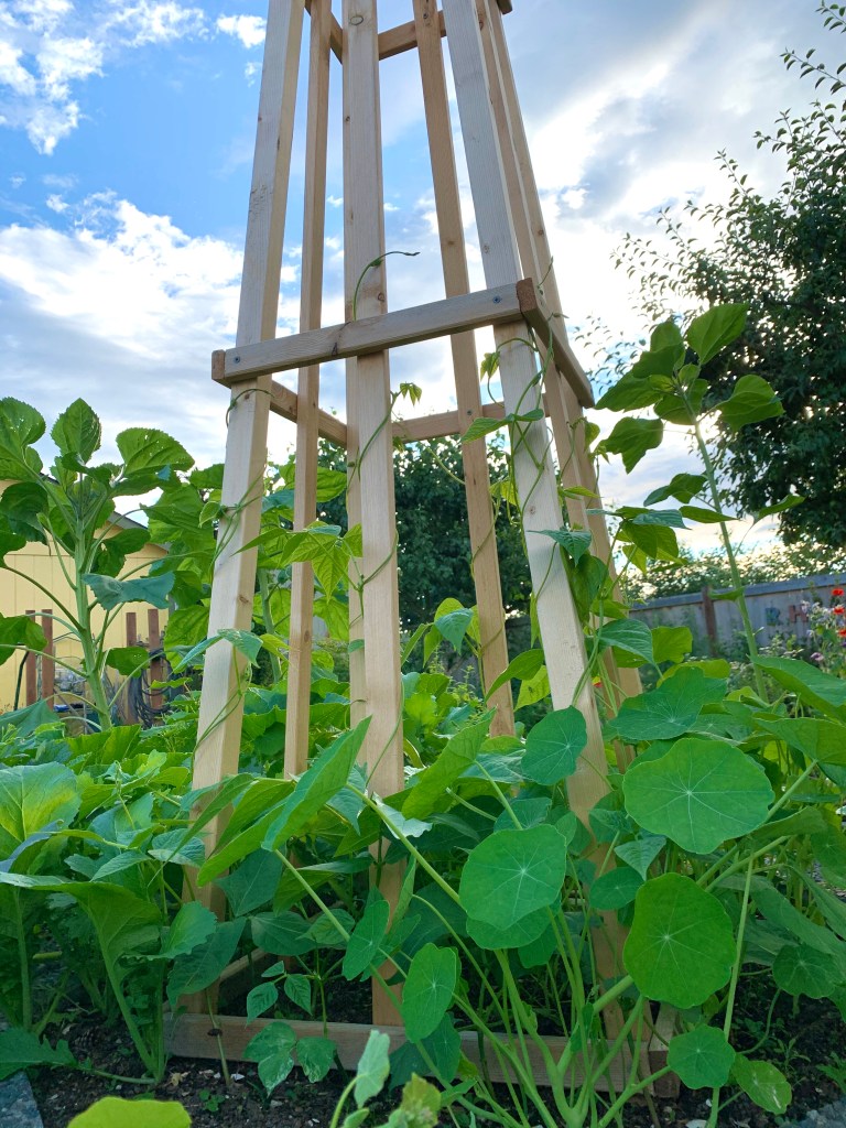 豆タワーにどんどん登っていく、蔓。物凄い勢いです。
